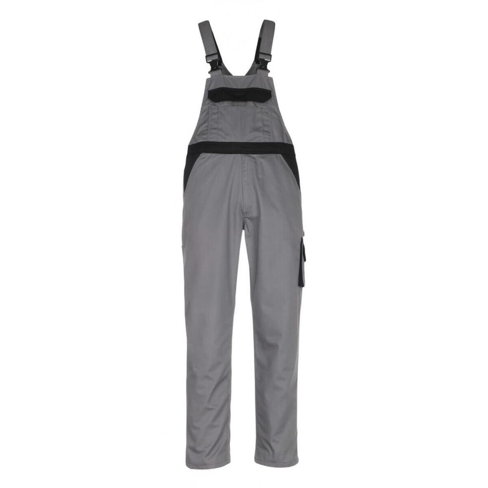 Two-toned. Light fabric. Triple stitched seams at leg and crotch. Adjustable straps in short, strong elastic with plastic buckles. Large bib pocket with flap and pen pockets. Inner pocket with hook and loop band fastening. Adjustable waist. Front pockets. Fly with zip. Back pockets with reinforcement, flap and hook and loop band fastening. Adjustable hammer loop. Thigh pocket with flap and hook and loop band fastening. Ruler pocket.