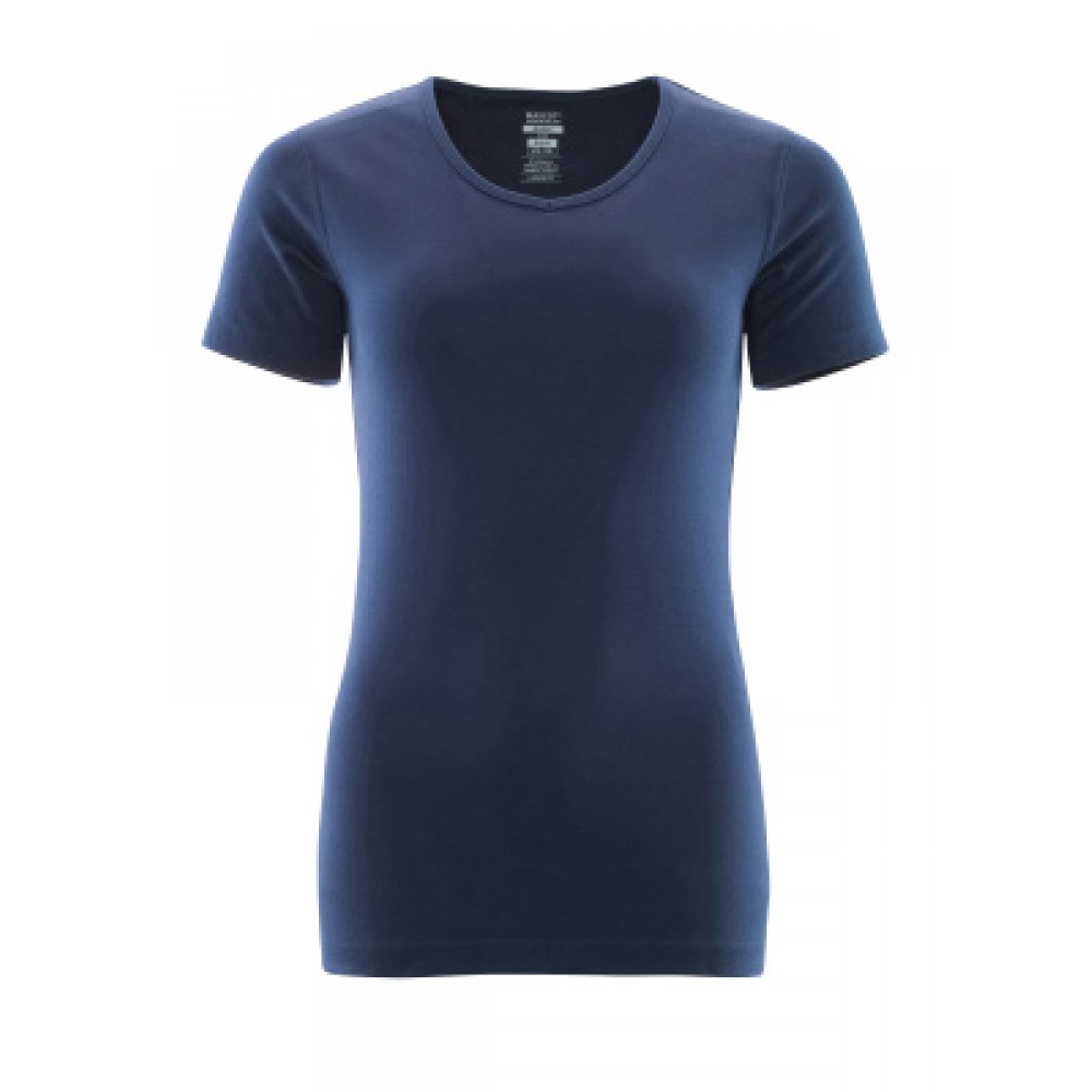 Ladies fit. V-neck. Rib at neck. Neckband.
